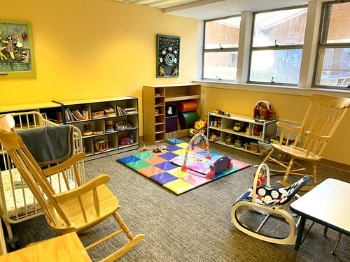 If you would prefer for your child to be cared for in our nursery during the service, we have childcare available for infants through kindergarten on Sunday mornings from 9a - noon. The nursery is located downstairs and is always staffed with at least two adults. You can ask any of our greeters or staff and they will show you to the nursery.