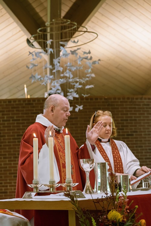 In the waters of baptism, we are lovingly adopted by God into God’s family, which we call the Church, and given God’s own life to share and reminded that nothing can separate us from God’s love in Christ. Holy Baptism, which can be performed through pouring of water or immersion in it, marks a formal entrance to the congregation and wider Church; the candidates for the sacrament make a series of vows, including an affirmation of the Baptismal Covenant, and are baptized in the Name of the Father, Son, and Holy Spirit. They are marked as Christ’s own for ever, having “clothed [themselves] with Christ” (Galatians 3:27).