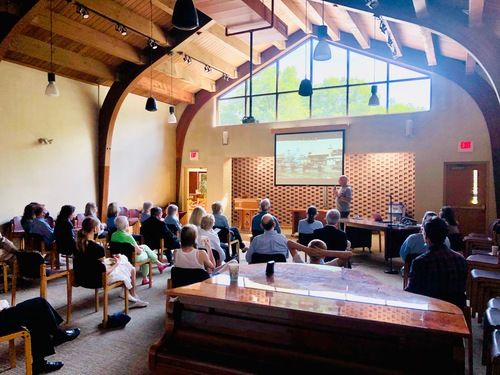 The library, with its organized collection of materials, provides an accessible and inviting space for study and research for individuals and groups. It circulates almost 3000 books and media to parishioners of all ages. In addition to its Sunday morning hours between and after services, the library is available by appointment.